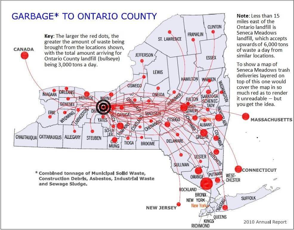 Every day up to 12,500 tons of garbage are buried in the heart of a national tourist destination known as the Finger Lakes, making this bucolic region the final repository for about half of the waste landfilled in New York State.